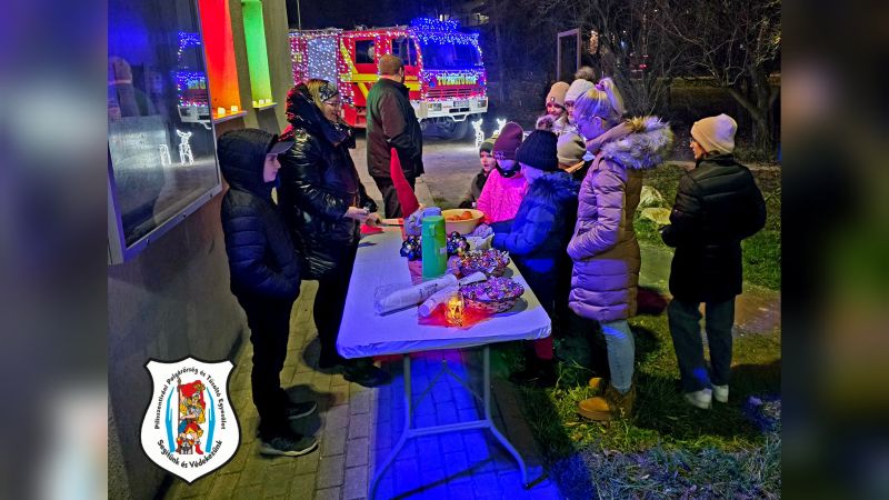 Egyesületünk idén végre az új épületrészen egy különleges kerek ablakot választhatott feldíszíteni, mellé pedig fénytűzoltóautónk és karácsonyi zenék, kis tábortűz, forralt bor és meleg tea, valamint kis édesség és gyümölcs várta az ablakvadászokat. Péntek lévén a tüzet felnőttjeink koordinálása mellett ifjúsági csoportunkba járó gyerekek tartották életben, a kínálóasztalnál pedig köszönjük szépen a gyerekek szüleinek közreműködését, segítségét! Reméljük mindenki megtalálta a 12-es számot, kapott pecsétet a füzetébe, valamint talált valami felmelegítőt, valami finomságot asztalkánkon! Köszönjük a szervezőknek a lehetőséget, köszönjük, hogy ilyen sokan ellátogattatok hozzánk!