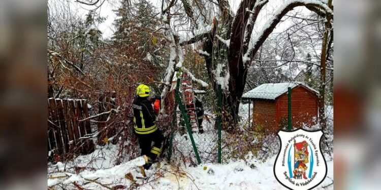 Pénteken 12 óra 27 perckor kaptuk a lakossági bejelentést, miszerint a Laki úton egy kamion elakadt, forgalmi akadályt képez. Tűzoltóink a vonulást perceken belül megkezdték, jelzett helyen egy rakomány nélküli kamion akadt el a havas útszakaszon, elzárva ezzel a telephely egyetlen bejáratát. Tűzoltóautónk és drótkötél segítségével a forgalmi akadályt megszüntettük, visszaszerelés után lejelentettük az önkormányzat által felénk jelzett vezetékre dőlt fát az Erdőalja utcában és megkezdtük a vonulást a helyszínre. Jelzett helyen az erdősávból kidőlt fa az úttesten keresztbe dőlt, a villanyvezetéken fennakadt. Tűzoltóink a fát ledarabolták, a forgalmi akadályt, a veszélyhelyzetet megszüntették. Az Erdősor utcában 2 káresetet jelentettek a munkálatok közben az ott lakók, az egyiken épületre dőlt fát, a másik címen kerítésre hasadt kb. 6 méteres faágat távolítottunk el további károkozás nélkül. Személyi sérülés egyik esetben sem történt! Önkénteseink visszaszerelést követően 14 óra 08 perckor bevonultak állomáshelyükre.