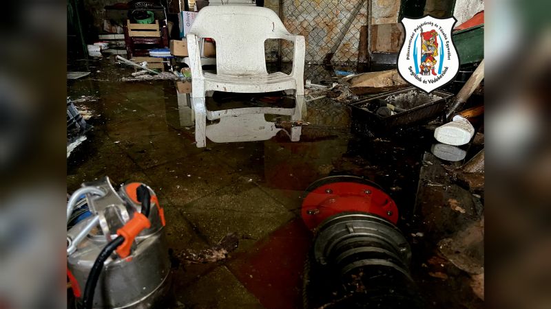 Tűzoltóink a riasztásra 6 fővel vonultak a helyszínre. Jelzett helyen egy kb. 110 négyzetméter alapterületű pincében nagyjából 50 cm víz állt. A vizet a tulajdonos kiérkezésünk előtt már elzárta, az épület áramtalanítását önkénteseink elvégezték. A nagy mennyiségű víz miatt tűzoltóink két szivattyút telepítettek a pincébe, melyekkel megkezdődött a vízeltávolítás. A fokozatot 1-esben határozta meg tűzoltásvezetőnk, segítséget a káreset felszámolásához nem kértünk. A vizet a tűzoltó technikával eltávolítható nagyjából 5 cm-ig kiszivattyúztuk, a maradékhoz nincs technikai felszereltségünk, így annak eltávolítása a tulajdonos feladata lesz. Rajunk visszaszerelés és adatfelvételezés után a helyszínt a tulajdonosnak átadta, majd 15 óra 48 perckor bevonult állomáshelyére. Személyi sérülés nem történt!